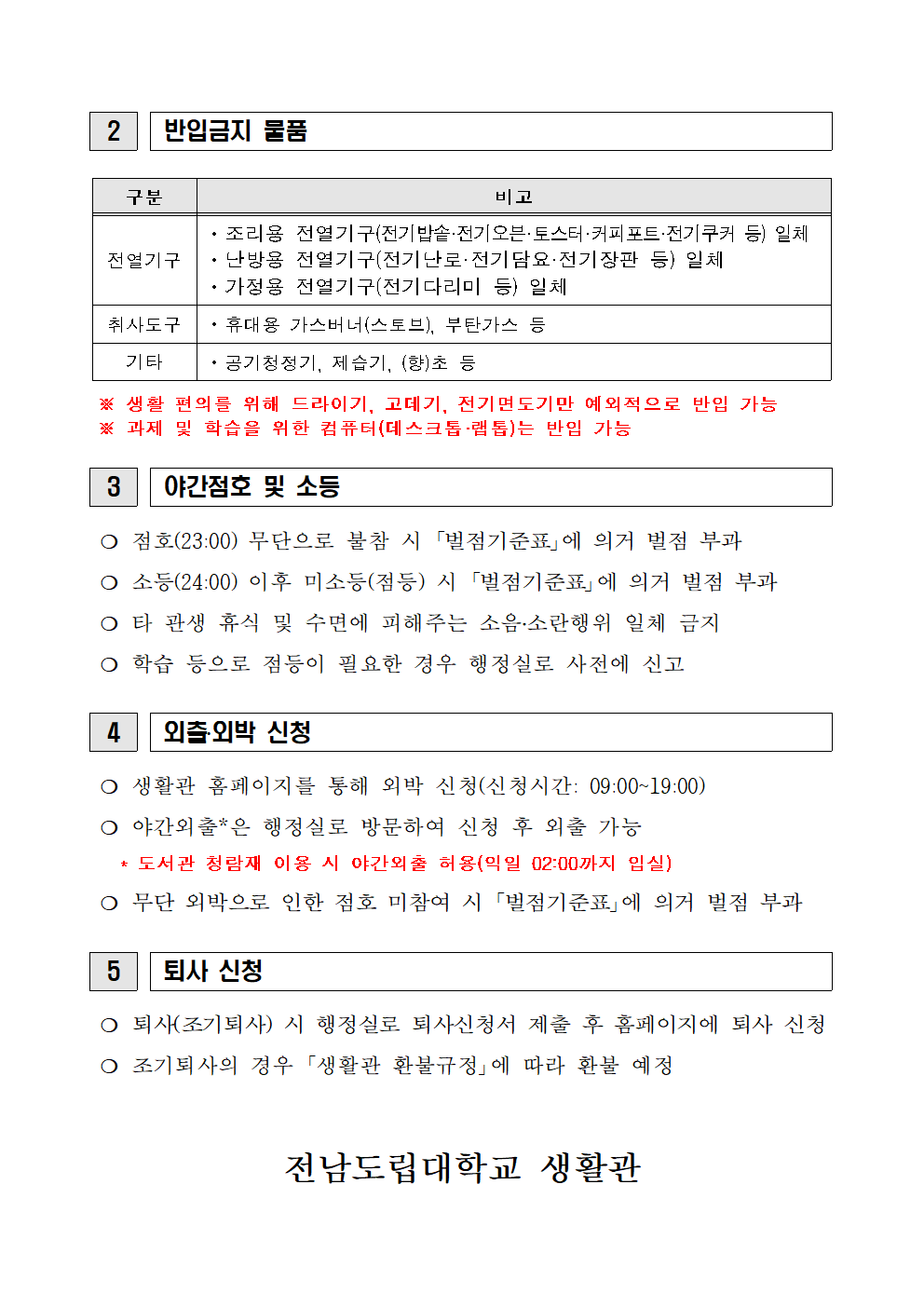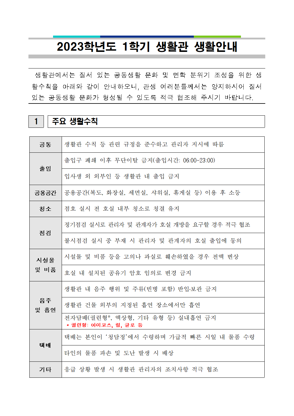 2023학년도 1학기 생활관 생활 안내