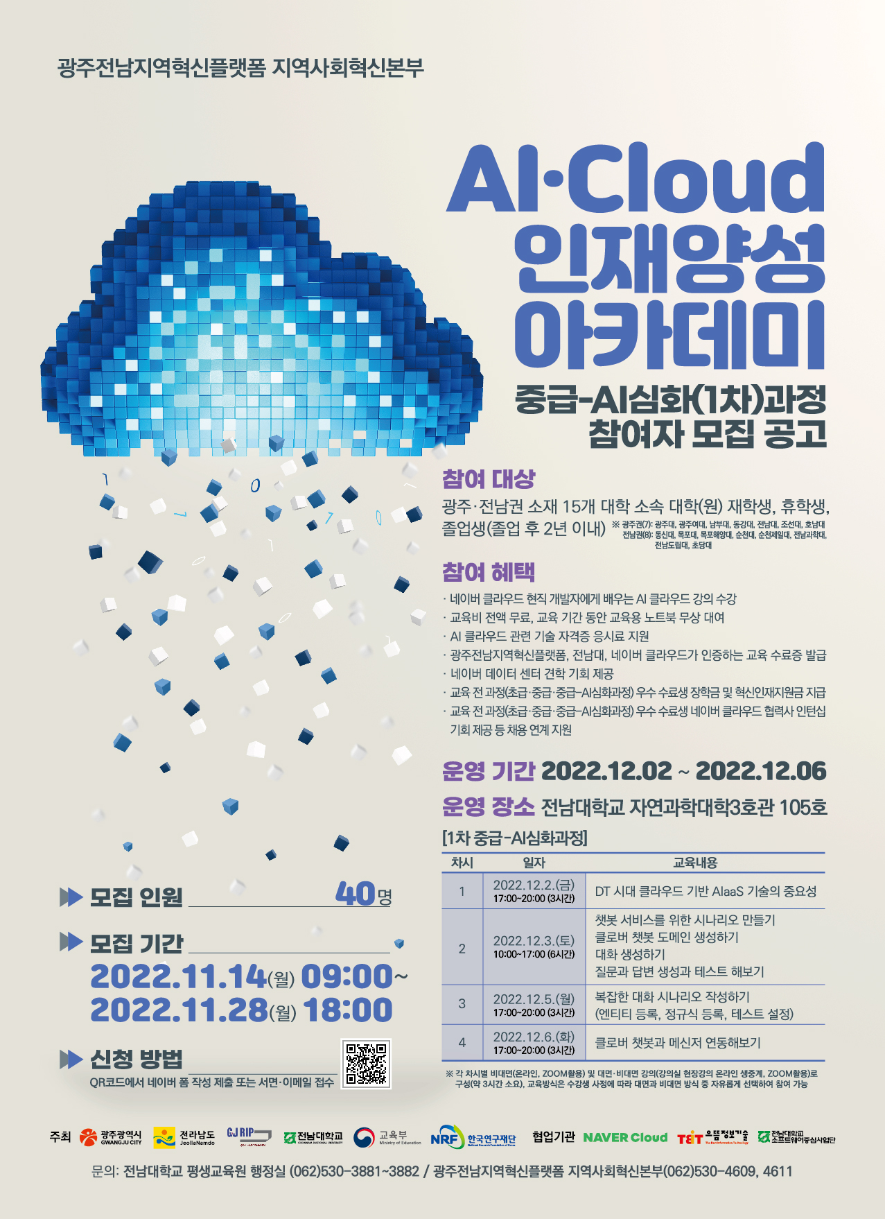 광주전남지역혁신플랫폼에서"AI.Cloud 인재양성 아카데미_중급-AI심화과정" 신청을 받고있습니다