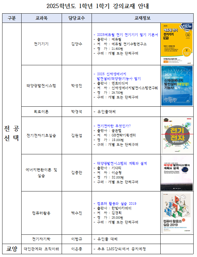 2025학년도 1학기 강의교재 안내(1학년)