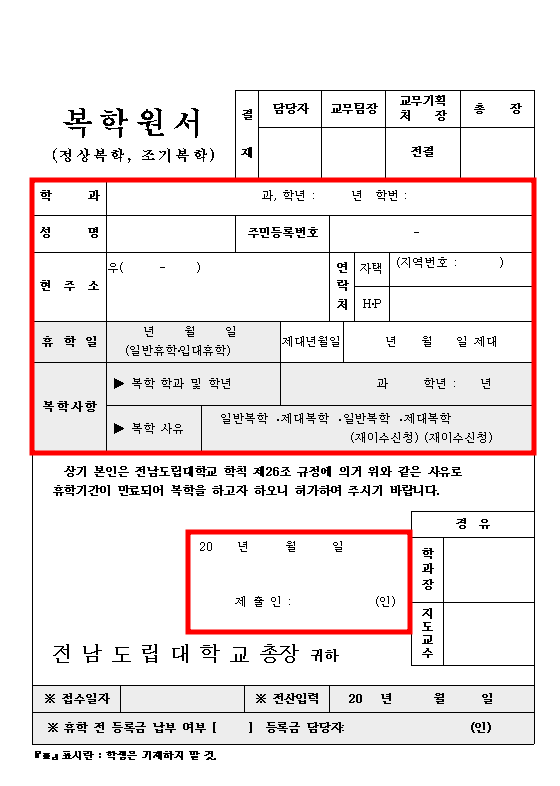 ● 이메일 접수 : 복학원서 서명란에 서명 후 JPG 및 PDF 파일로 첨부하여 이메일 발송