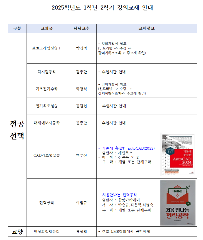 2025학년도 2학기 강의교재를 게재하오니,수업에 차질없이 준비하시기 바랍니다.
