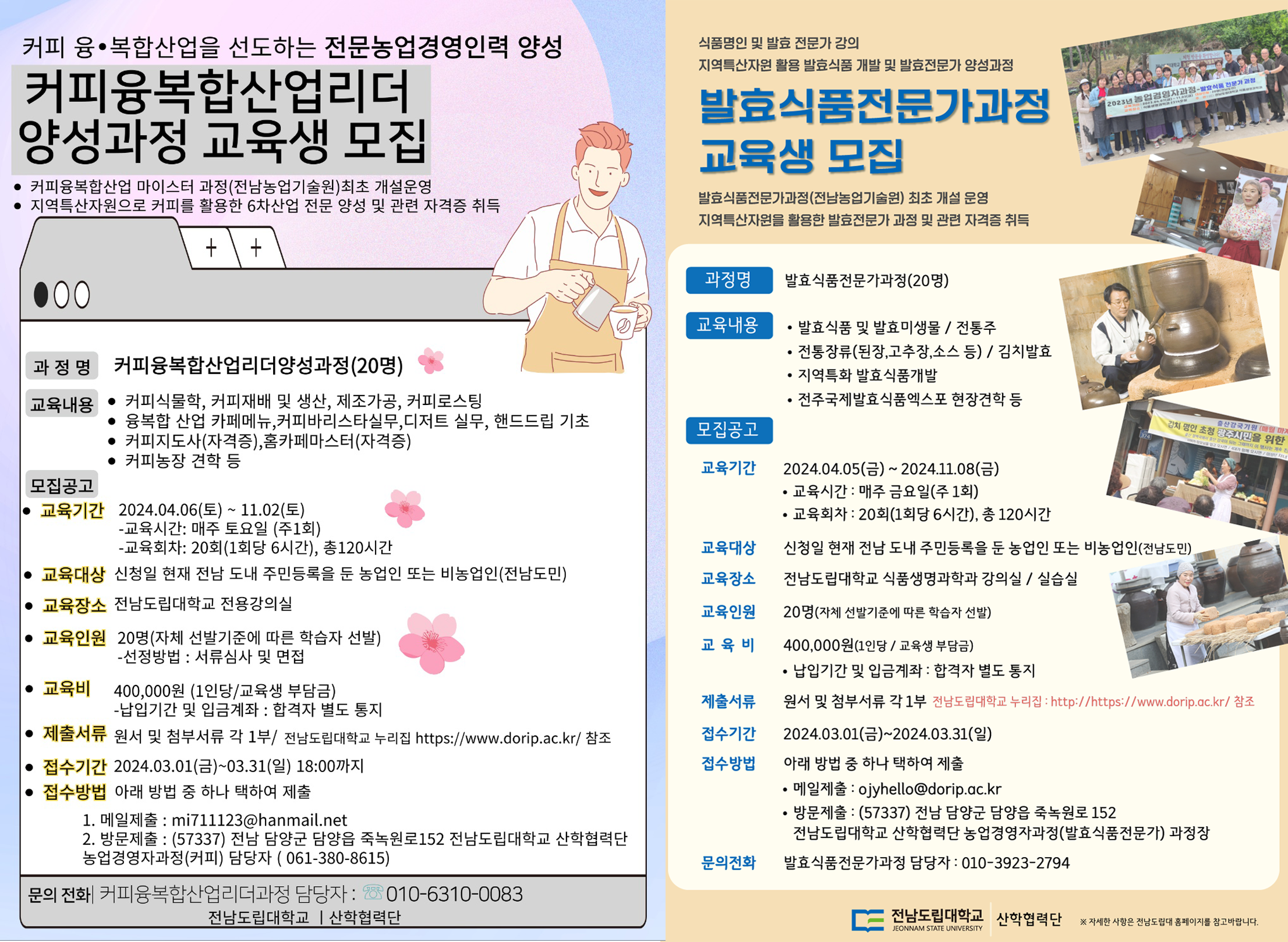 2024년 농업경영자과정(발효식품전문가, 커피융복합산업리더) 교육생 모집