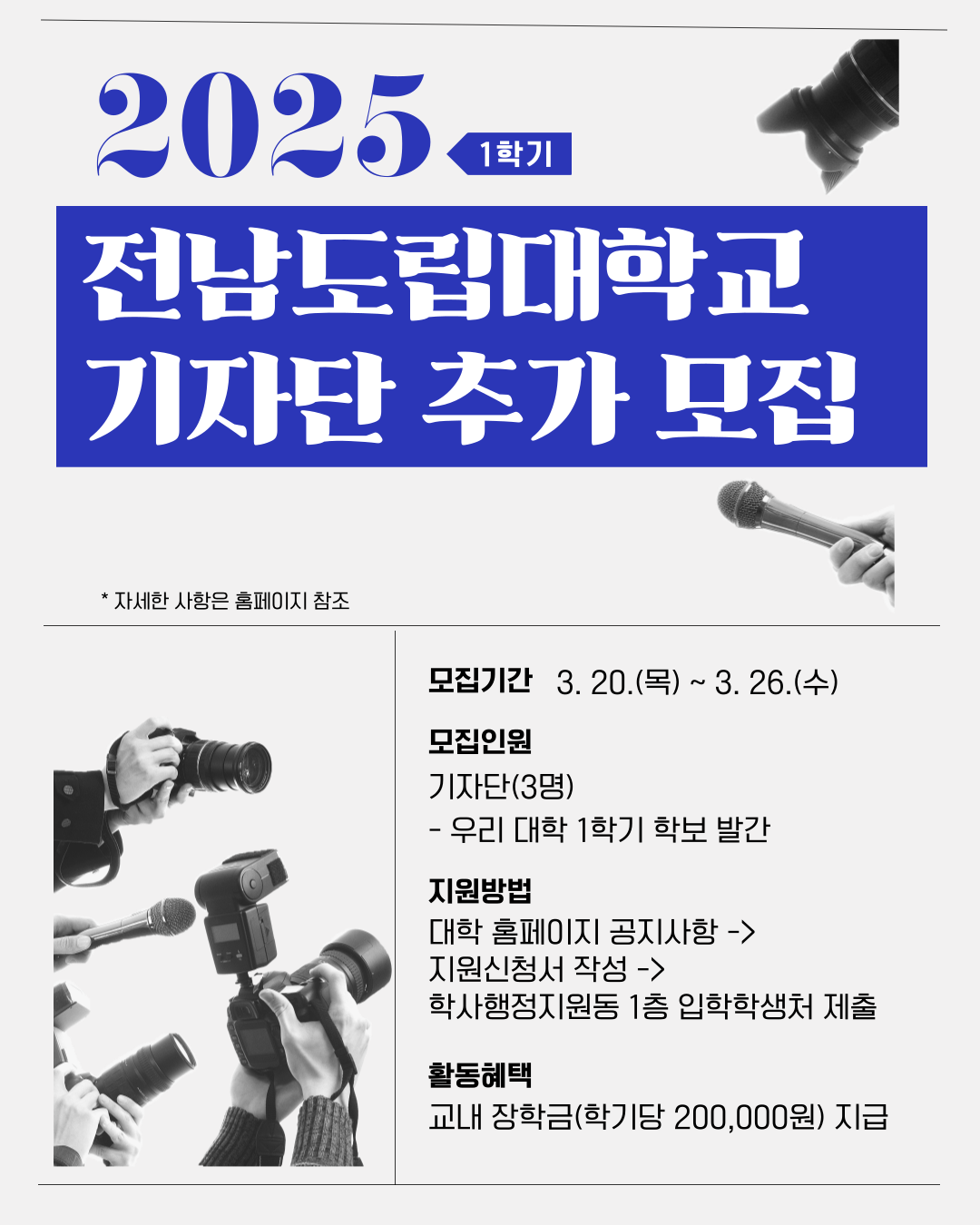 ※ 중도 포기 또는 활동 실적이 없을 시 장학금을 미지급하며 방송반, 기자단 동시 활동 시에도 장학금은 중복 지급되지 않습니다.