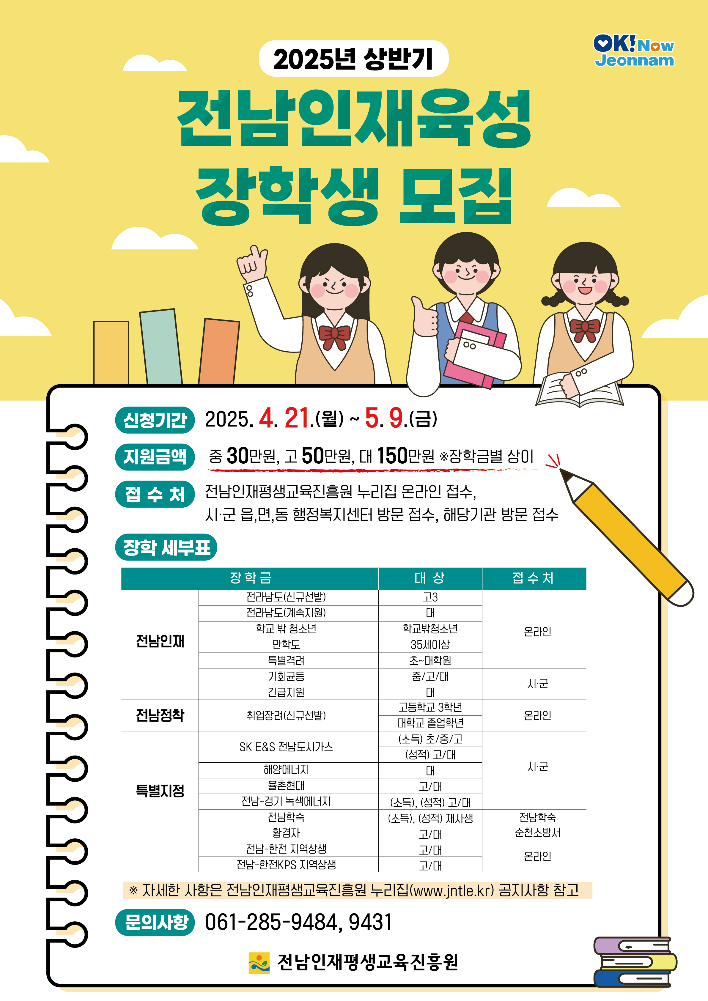 2025년 상반기 전남인재육성 장학생 선발 공고