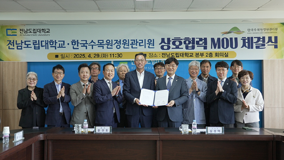 산림청 산하 한국수목원정원관리원(이사장 심상택)은 29일 전남도립대학교(총장대행 윤진호)에서 심상택 이사장, 윤진호 총장대행 등이 참석한 가운데 정원문화 확산과 정원 분야 전문인력 양성을 위한 업무협약을 체결했다고 밝혔다.