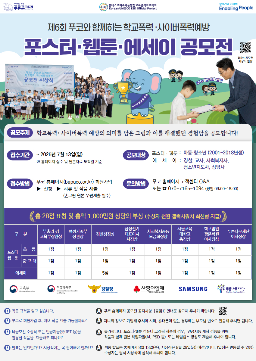 가. 공모전명 : 제6회 푸코와 함께하는 학교폭력·사이버폭력예방 공모전