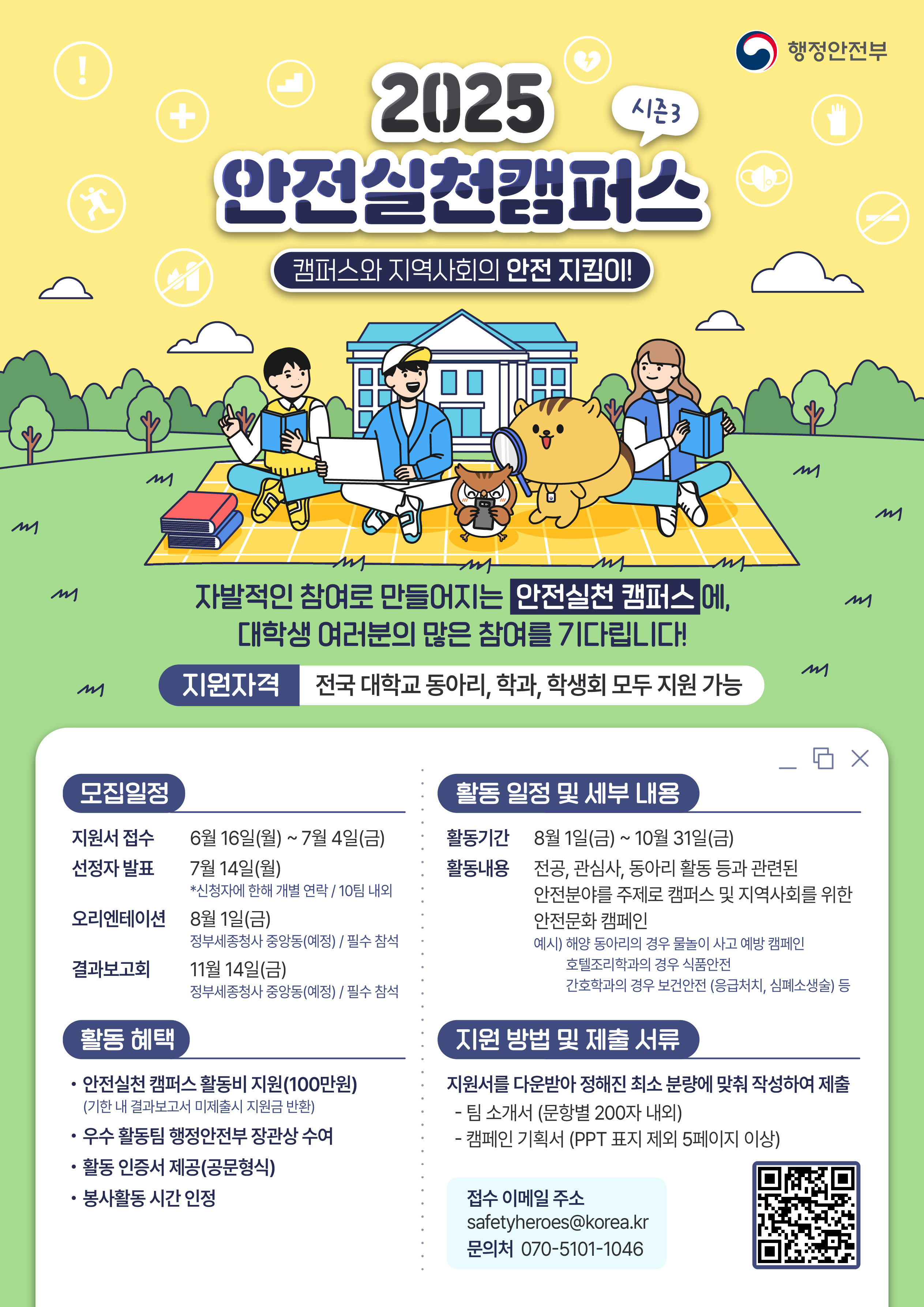 나. 활동내용: 전공, 관심사, 동아리 활동 등과 관련된 안전분야를 주제로 캠퍼스 및 지역사회를 위한 안전문화 캠페인 전개