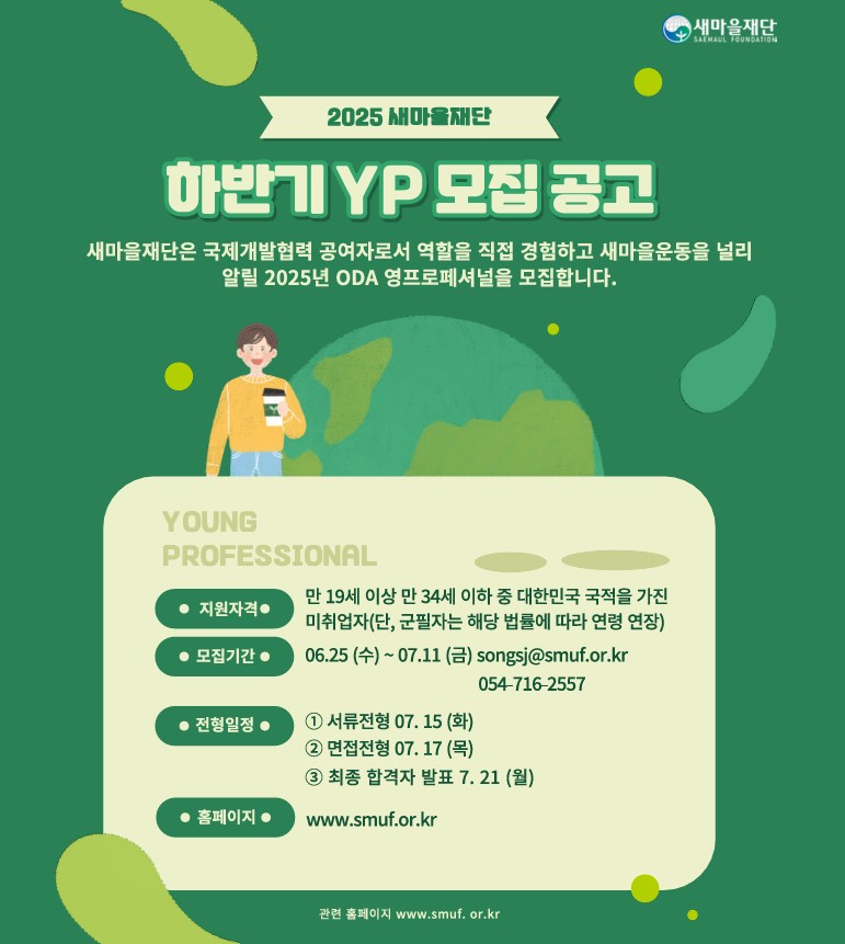 나. 모집인원 : 3명다. 모집개요 : 첨부파일 참조라. 접수방법 : 전자메일 접수(songsj@smuf.or.kr)마. 문 의 처 : 새마을재단 경영총괄부 (054-716-2557)