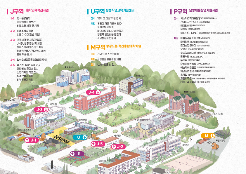 라. 주요구성 : 대학 우수성과 홍보 및 성과공유회, 진로직업체험, 평생직업교육 체험, 전국 드론 스포트대회, 담양채움창업기업 홍보 전시 등